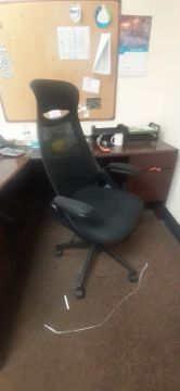 Lot of Office Furniture to Include: (5) L-Shaped Cherry Wood Desks; (8) Cherry Wood File Cabinets; (1) Cherry Wood 2 Door Cabinets; (3) Cherry Wood Bookcase; (6) Office Chairs; (6) Chairs; (2) Standing Desks; (4) Computer Monitors; (1) Cherry Wood Round Table w/ (4) Chairs. HIT# 2451269. Front Offices. Asset Located at 13 Edison St., Amityville, NY 11701.