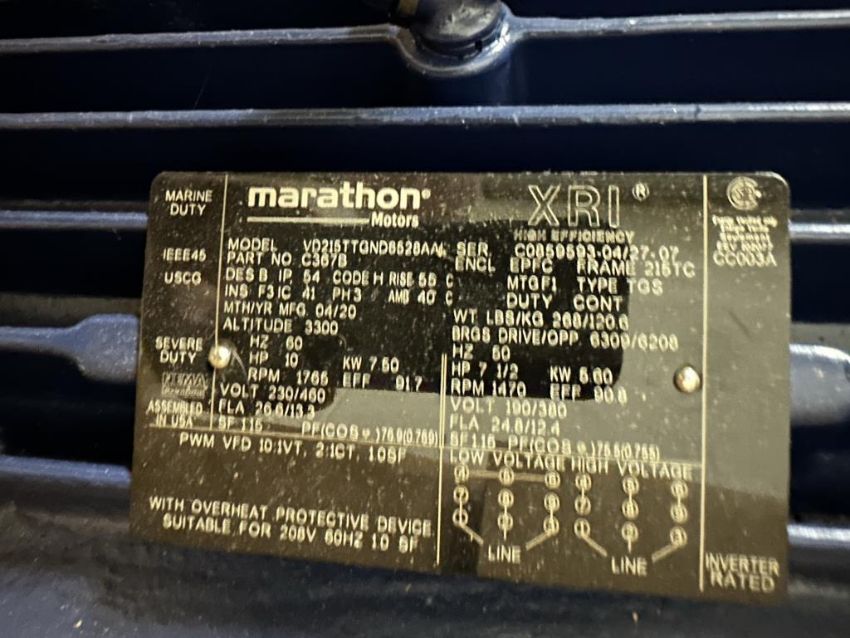 Marathon VC215TTGND6528AAL Lot of Two (2), XRI 10 HP Motors. HIT# 2447247. Loc: Back Warehouse. Asset Located at 225 Dixon Ave., Amityville, NY 11701.