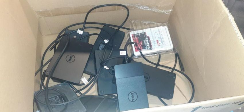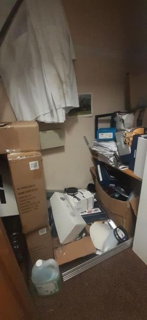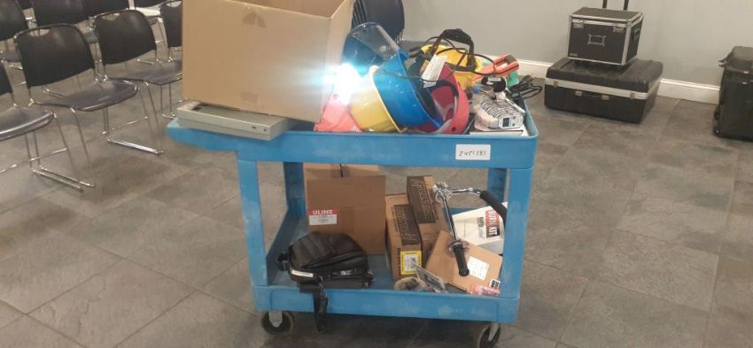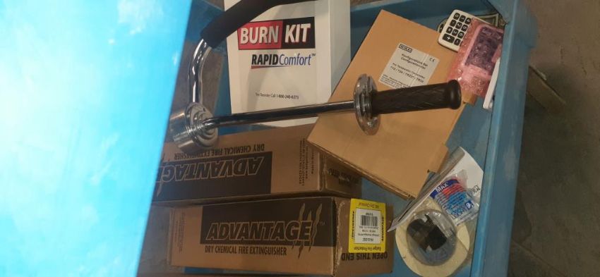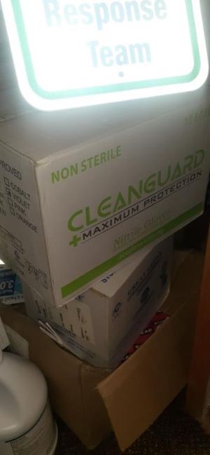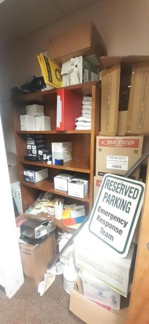 Contents of Closet and Rubbermaid Cart to Include: Office Supplies; Safety Glasses; Face Masks; Hard Hats; Fire Extinguishers; Uline Retractable Barriers; Dell Power Cords w/ Ports; Ear Plugs; Hand Sanitizer; Nitrile Gloves; Etc. (See Photos for Details). HIT# 2451281. Asset Located at 13 Edison St., Amityville, NY 11701.