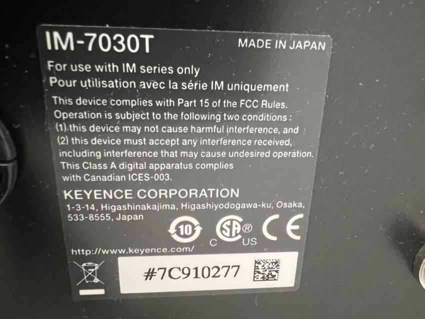 Keyence IM Series Image Dimension Measurement System. HIT# 2447188. Loc: Offices. Asset Located at 225 Dixon Ave., Amityville, NY 11701.