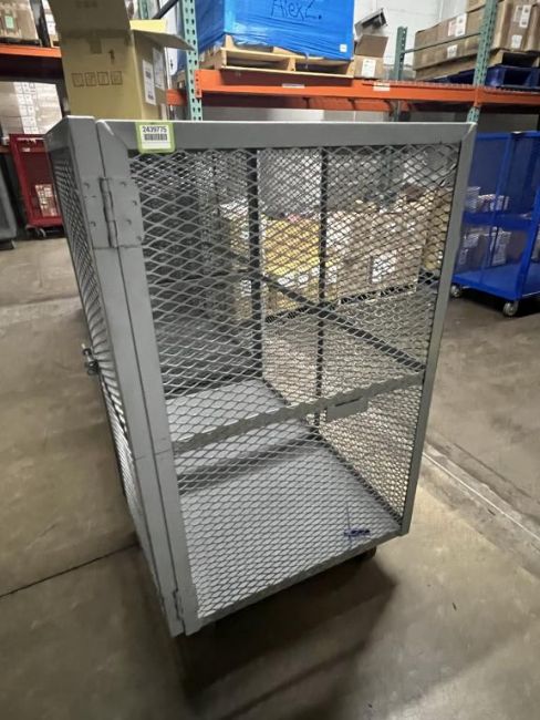Lot of (3) Gray expanded metal product carts. HIT# 2439775. Left warehouse (Back wall). Asset Located at 13 Edison St., Amityville, NY 11701.