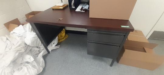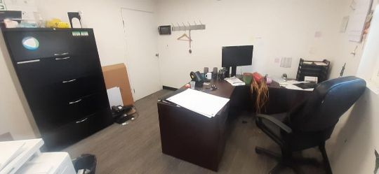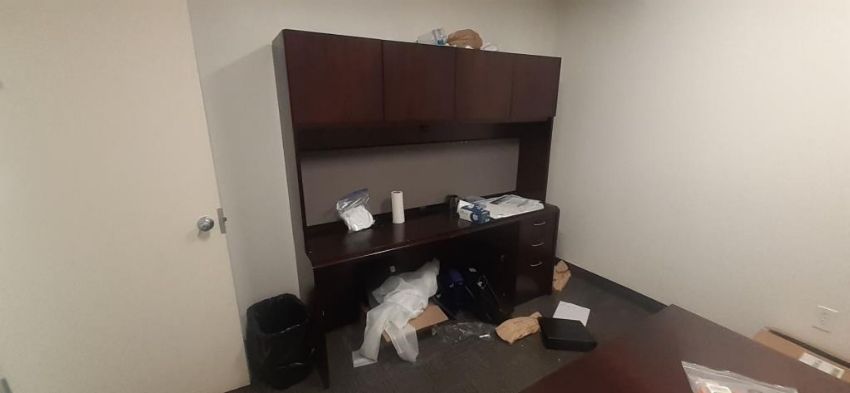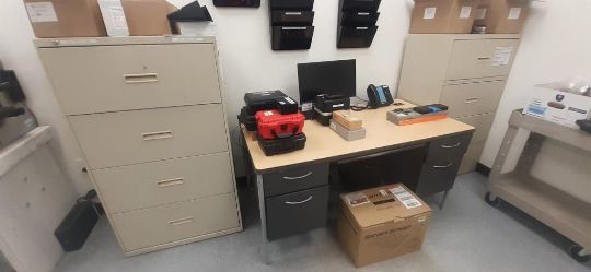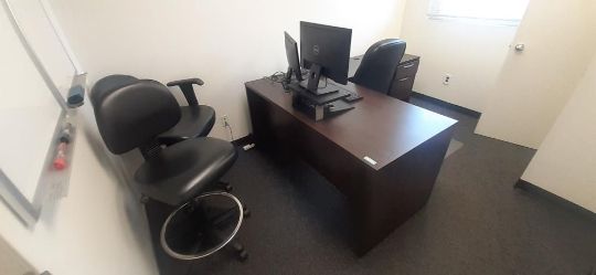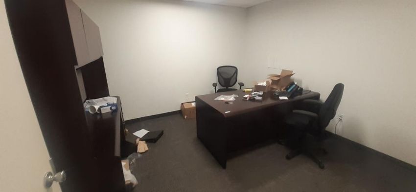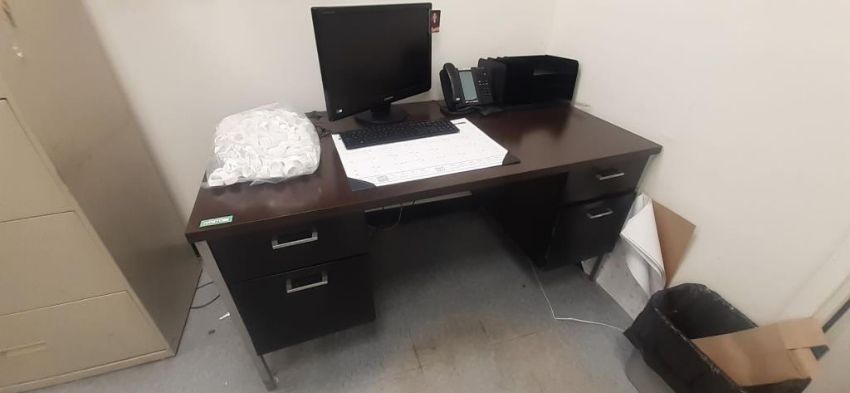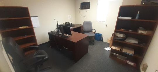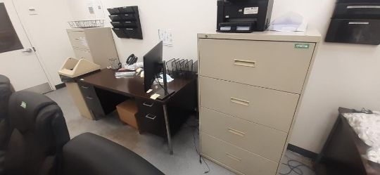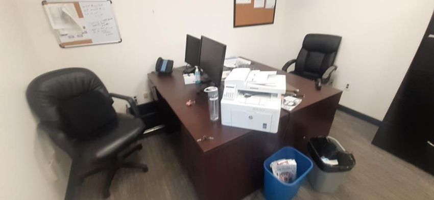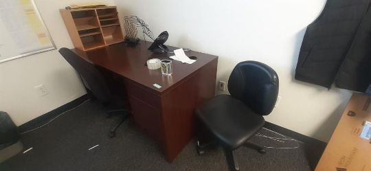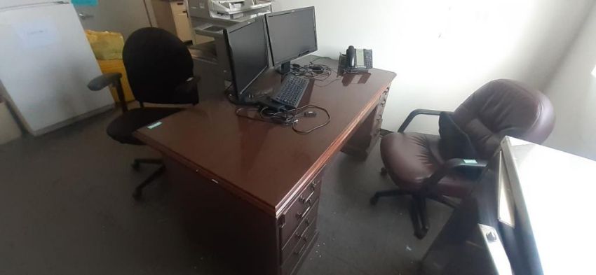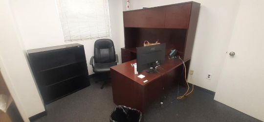 Lot of Offices Furniture to Include: (3) L-Shaped Cherry Wood Desks; (7) Cherry Wood Desks; (1) Cherry Wood Credenza w/ Upper Cabinets; (4) Wood Bookcase; (3) Desks; (20) Office Chairs; (5) File Cabinets; (14) Computer Monitors; (1) HP Printer (No Contents) HIT# 2451330. Office Area. Asset Located at 225 Dixon Ave., Amityville, NY 11701.