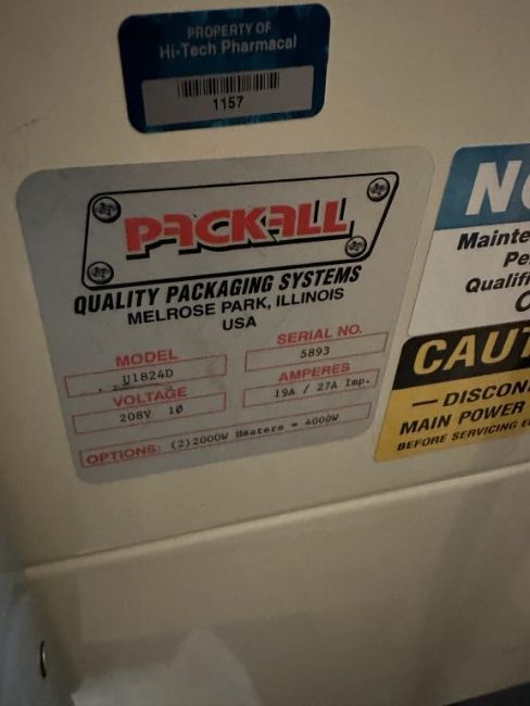 PackAll Packaging U1824D Seal bar width: 18 inches; Seal bar length: 24 inches, 208v. S/n#5893. HIT# 2447266. Loc: Back Warehouse. Asset Located at 225 Dixon Ave., Amityville, NY 11701.