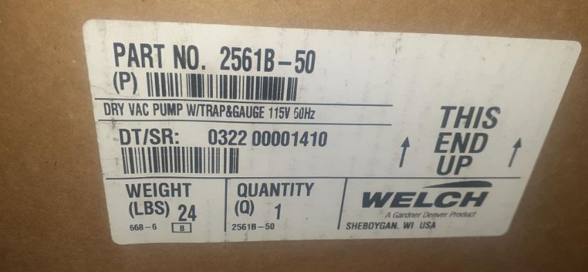 Welch 2561B-50 Piston Vacuum Pump (New). HIT# 2451258. Warehouse. Asset Located at 13 Edison St., Amityville, NY 11701.