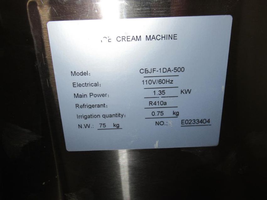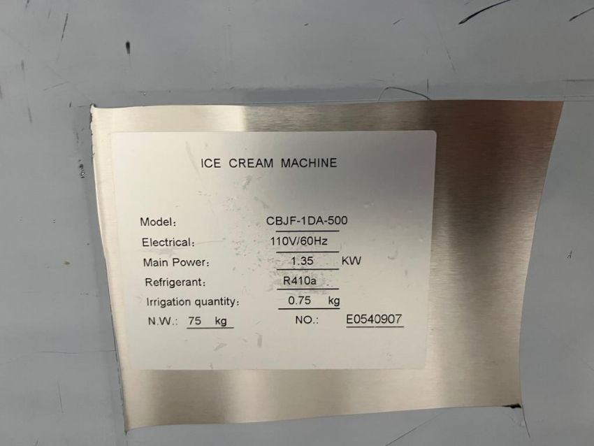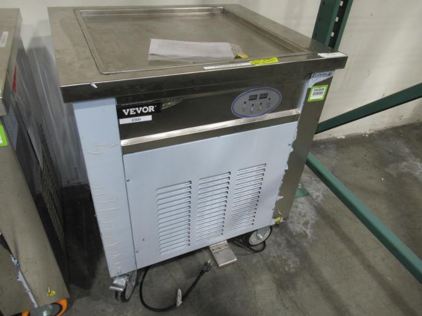 Vevor commercial rolled ice cream machine, model CBJF-1DA-500, s/n E0233404, 110 volt/60 Hz, R410a refrigerant . HIT# 2443650. Row. 21H. Asset located at 26545 Danti Court, Hayward, CA 94545.