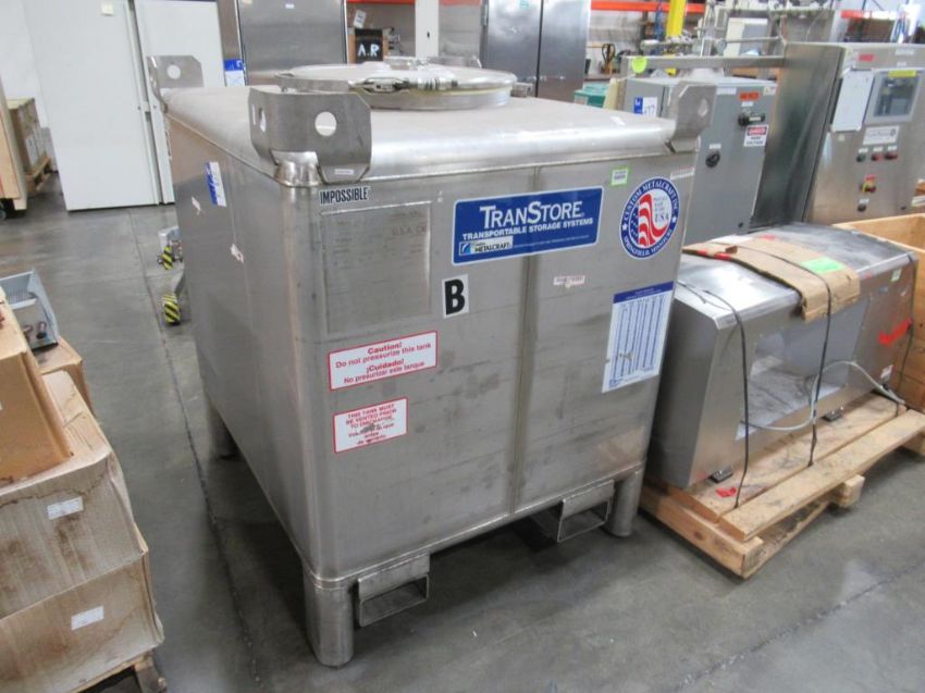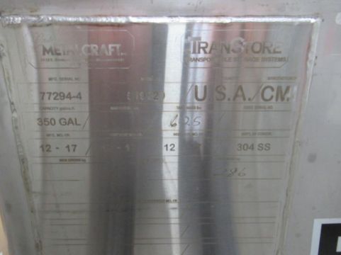 Metalcraft Transtore tote tank, 350 gal, 304ss, s/n 77294-4, mfg. 2017 HIT# 2443659. Row. 19B. Asset located at 26545 Danti Court, Hayward, CA 94545.