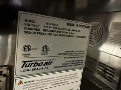 Turbo Air MUF-28-N 28" Undercounter Freezer, 115v. HIT# 2461011. Loc: Front Warehouse. Asset Located at 4710 W Ledbetter Drive, Dallas, TX 75236.