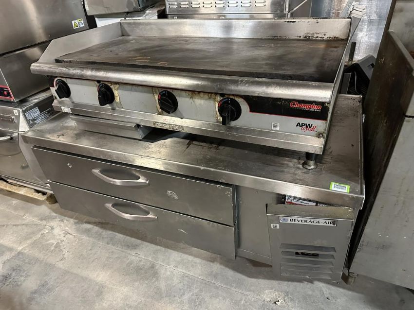 Lot to Include: (1) APW Wyott Gas Griddle and (1) Beverage Air Chef Base. HIT# 2460989. Loc: Front Warehouse. Asset Located at 4710 W Ledbetter Drive, Dallas, TX 75236.