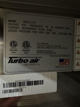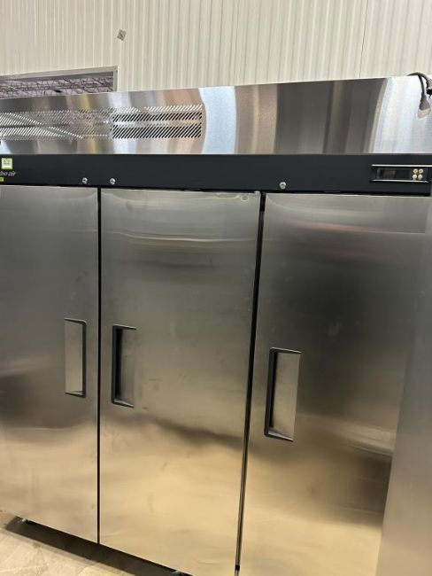 Turbo Air M3F72-3-N 78" Three section Reach in Freezer, 65.8 cu. ft. capacity, 115v. S/n#H2K3F71G90957. HIT# 2431763. Loc: Front Warehouse. Asset Located at 4710 W Ledbetter Drive, Dallas, TX 75236.
