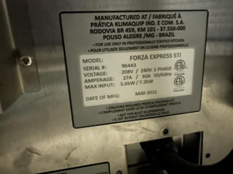 Pratica Forza Express Sti Electric High-Speed Stainless Steel Countertop Ventless Rapid Cook Pizza Oven, 208-240v, (2021). S/n#96443. HIT# 2460994. Loc: Front Warehouse. Asset Located at 4710 W Ledbetter Drive, Dallas, TX 75236.