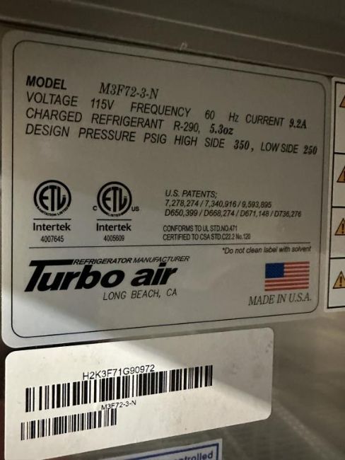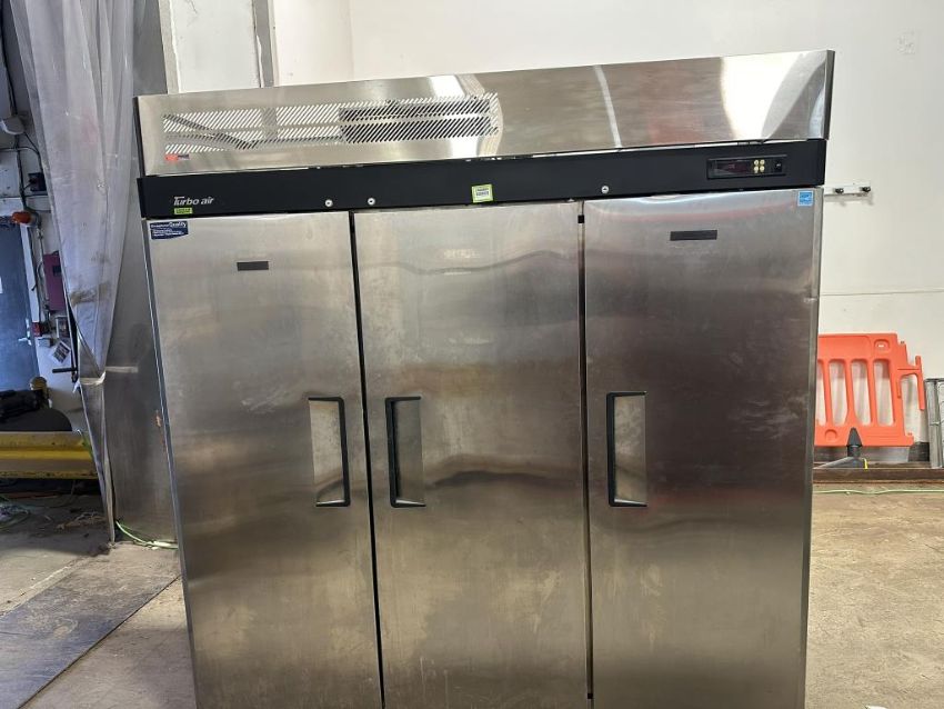 Turbo Air M3R72-3-N 78" M3 Refrigerator, Reach-in, Three-section, 65.8 cu. ft., 115v. S/n#H2K3F71G90972. HIT# 2460889. Loc: Front Warehouse. Asset Located at 4710 W Ledbetter Drive, Dallas, TX 75236.