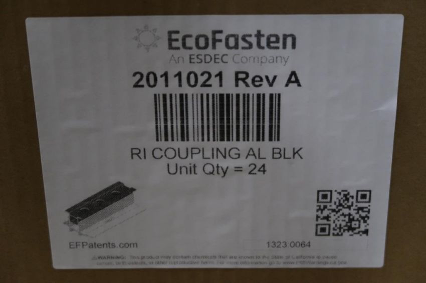 EcoFasten 2011021 REV A Lot: (21) Boxes of Black Aluminum Rock-It System Couplings, (24) Couplings per Box. HIT# 2494819. Asset Located at 220 Barber Ave., Worcester, MA 01606.