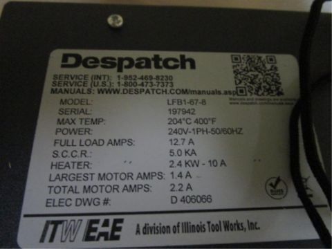 Despatch SHP-PC0001, LFB1-67-8 SHP-PC0001 Drying Oven 48" x 48" x 55". New - Unused, in Crate. S/n# 197942. HIT# 2448989. Asset Located at 37637 Schoolcraft Rd., Livonia, MI 48150. ***Sale is restricted to US buyers, exports are prohibited.***