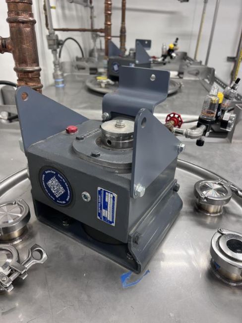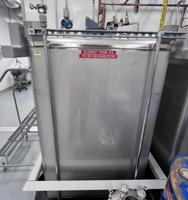 Titan IBC 111485 Stainless Steel IBC 550 Gallon Tote Tank Dimensions are 48" x 42" x 87". Lot to include Emerson Micro Motion Fork Density Meters, Tri-Clamp Mixer, 1.5" FLG. HIT #2476518. Asset Located at 84805 Ave 48, Coachella, CA 92236.