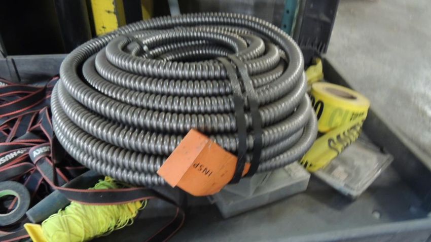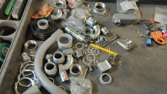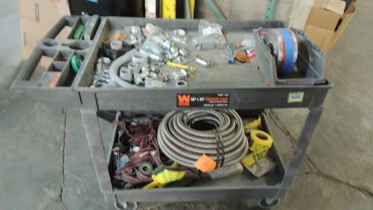 Lot: Cart and contents, flex conduit, connectors. HIT# 2374228. Warehouse. Asset Located at 1530 Goodyear Drive - Suite G, El Paso, TX 79936.