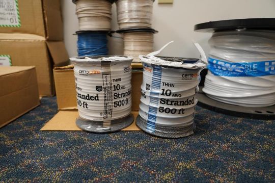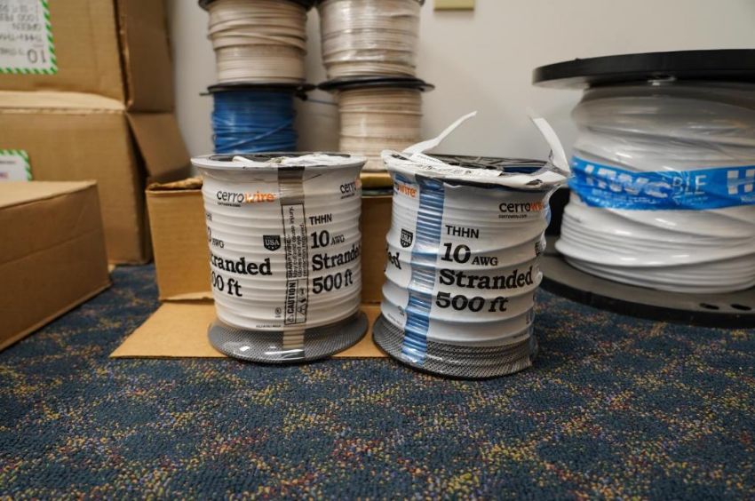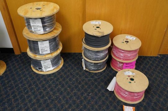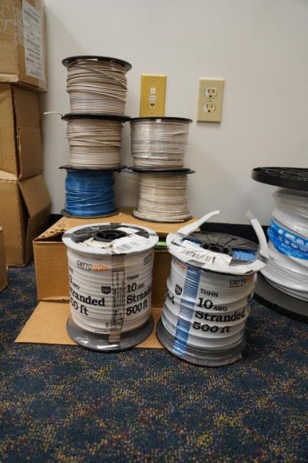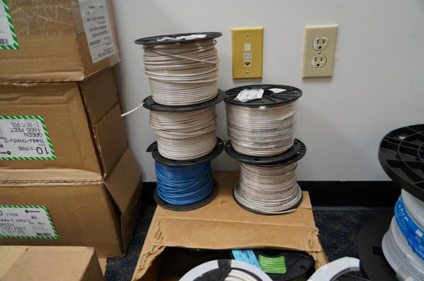 Lot of (33) Assorted Wire Spools in Room. HIT# 2354573. Asset Located at 6314 Eastwood Court, Mequon, WI 53092.