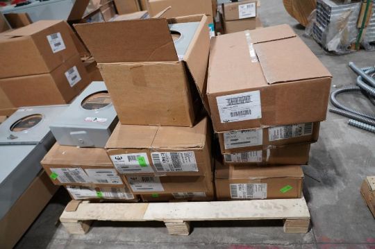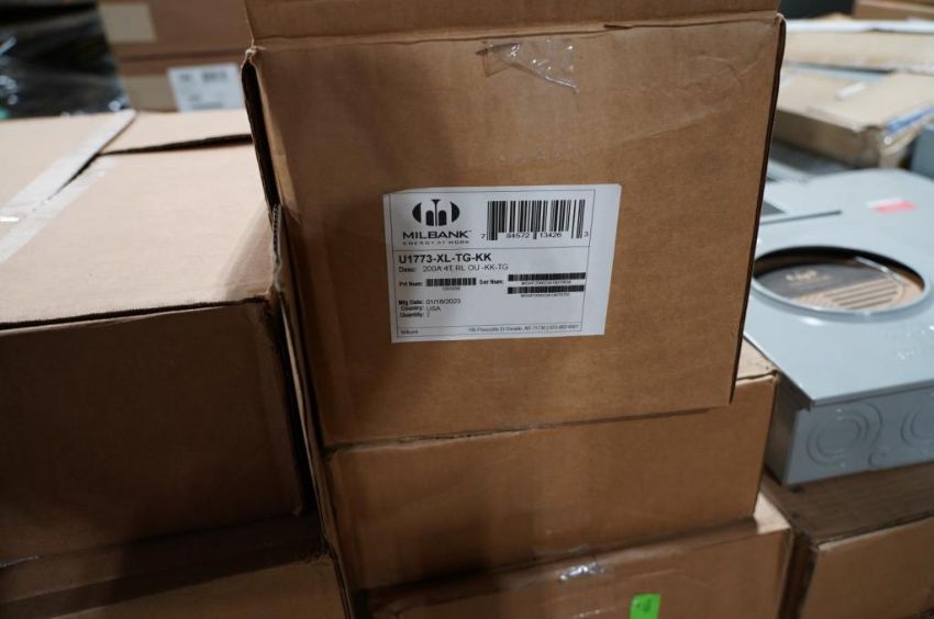 Milbank Skid (11 Boxes Total) Models U4801-XL-5T9 and U1773-XL-TG-KK 200 Amp Meter Sockets. HIT# 2354558. Asset Located at 6314 Eastwood Court, Mequon, WI 53092.