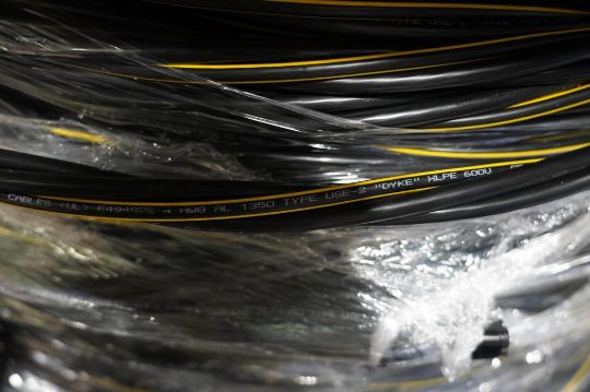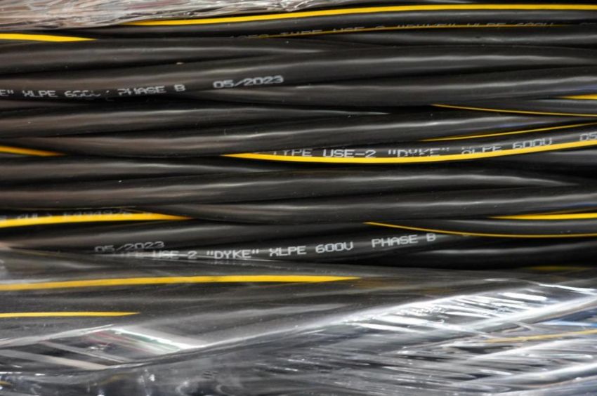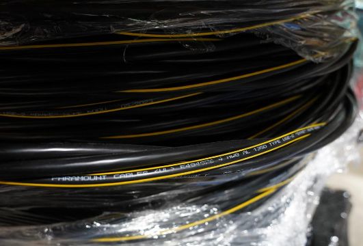 Large Spool of Wire , Paramount Cables, E494976, 4 AWD, AL 1350 Type. USE-2 "DYKE" XLPE 600V, 4 Strain, Aluminum. HIT# 2354569. Asset Located at 6314 Eastwood Court, Mequon, WI 53092.
