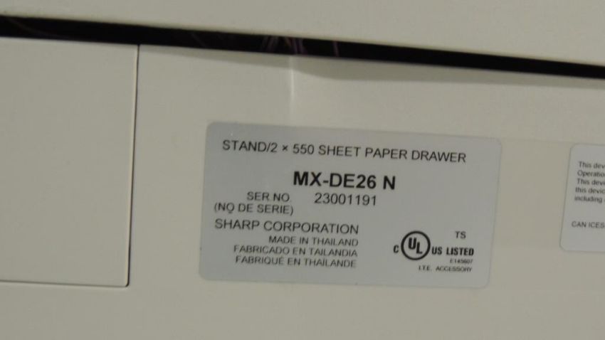 Sharp MX-DE26 N Printer, scan, copy , fax network compliant. SN# 23001191. HIT# 2374203. Office Area. Asset Located at 1530 Goodyear Drive - Suite G, El Paso, TX 79936.