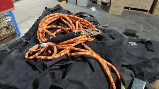 Lot: (2) pallets and contents, bags with safety harness, ropes, other safety gear. Review photos for more information. HIT# 2374245. Warehouse. Asset Located at 1530 Goodyear Drive - Suite G, El Paso, TX 79936.