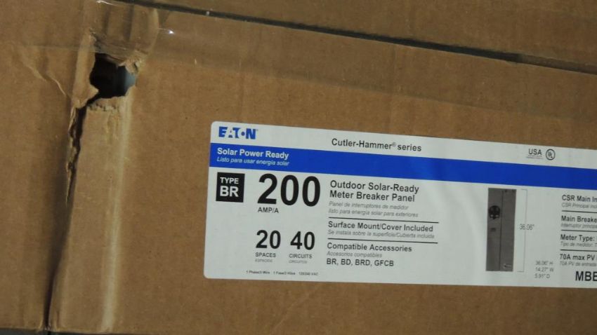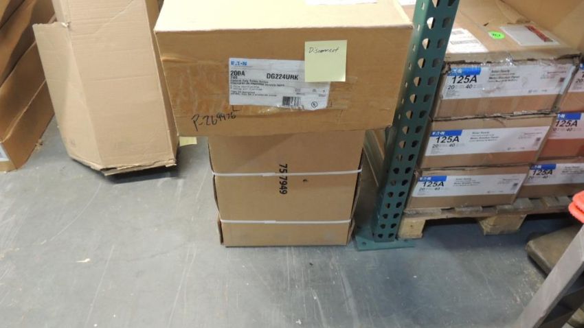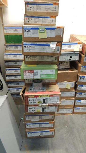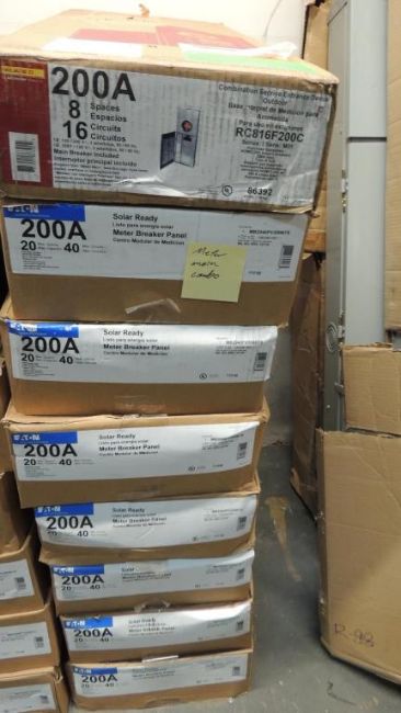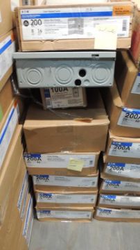 EATON Lot: (11) 200amp outdoor main lug, approximately (15) 200amp outdoor main breaker, 200amp outdoor load centers, approximately (11) 200amp solar ready meter breaker panel, approximately (3) Pestle Meters, (2) 200amp general duty safety switch, other items included but not listed. Review photos for more information. HIT# 2374247. Warehouse. Asset Located at 1530 Goodyear Drive - Suite G, El Paso, TX 79936.