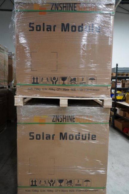 ZNShine ZXM6-NH120-370M Lot: (4) Pallets of 370 Watt Photovoltaic Solar Panels, 36 Panels per Crate. HIT# 2354515. Asset Located at 6314 Eastwood Court, Mequon, WI 53092.