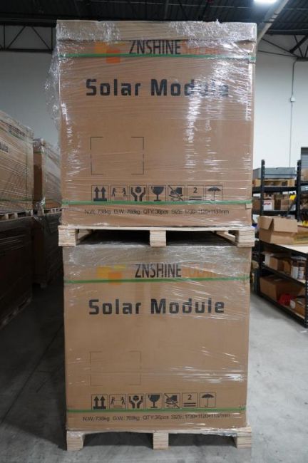ZNShine ZXM6-NH120-370M Lot: (4) Pallets of 370 Watt Photovoltaic Solar Panels, 36 Panels per Crate. HIT# 2354514. Asset Located at 6314 Eastwood Court, Mequon, WI 53092.