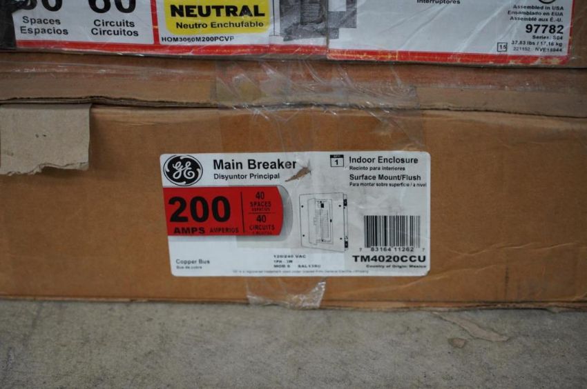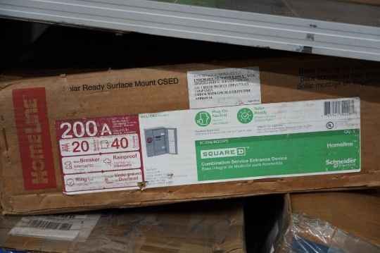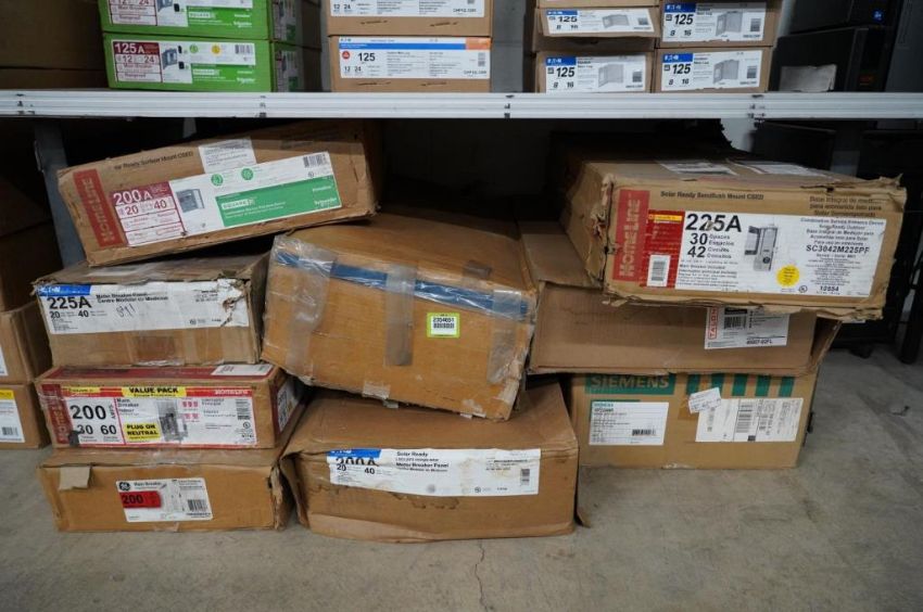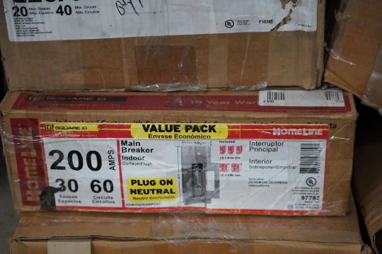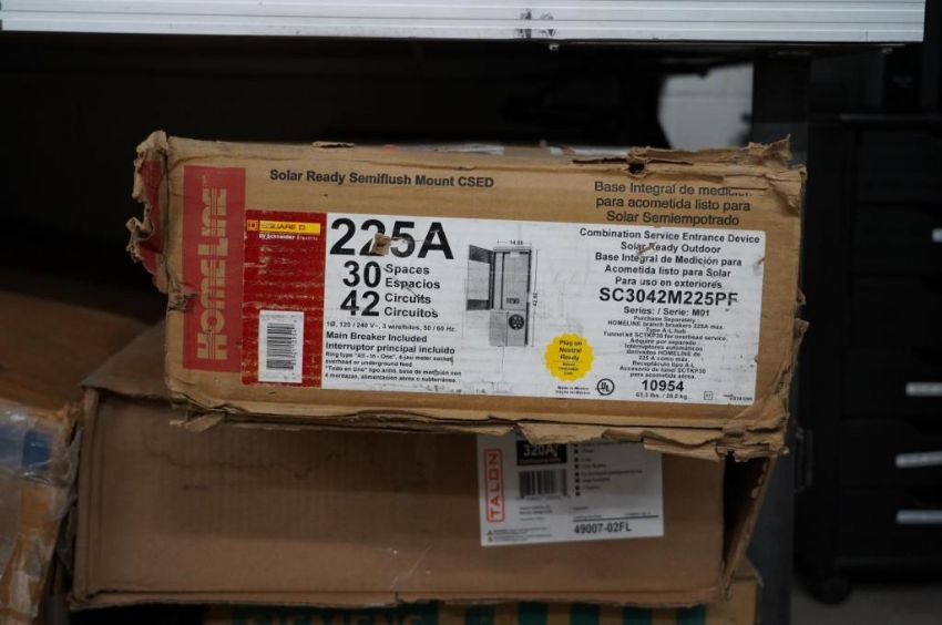 Lot of Assorted Main Breaker Panels, Safety Switches and Meter Sockets, (1) Homeline 200Amp, 20 Space, 40 Circuits, (1) Homeline 200 Amp, 30 Space, 60 Circuit, (1) Eaton 200 Amp, 20 Spaces, 40 Circuits, (1) GE 200 Amp, 40 Spaces, 40 Circuits, (1) Siemens GF224NR General Duty Safety Switch, (1) Talon 320 Amp Meter Socket, and Homeline 225 Amp, 30 Space, 42 Circuits Main Breaker. HIT# 2354651. Asset Located at 9124 Grand Ave. S - Ste. 105, Bloomington, MN 55420.