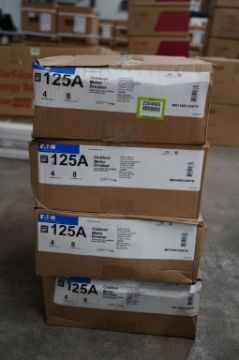Eaton MBT48B125BTS Lot of (4) 125 Amp Outdoor Meter Breakers, 4 Spaces, 8 Circuits, Surface Mount, 3 Wire , Single Phase, 120/240 Volts. HIT# 2354665. Asset Located at 9124 Grand Ave. S - Ste. 105, Bloomington, MN 55420.