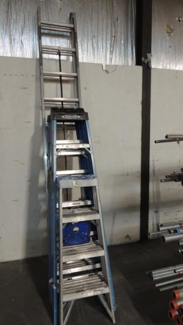 Werner Lot: (1) 4' Lewisville, (3) 6' 250lb capacity, (1) 20' extension ladder. HIT# 2374211. Warehouse. Asset Located at 1530 Goodyear Drive - Suite G, El Paso, TX 79936.