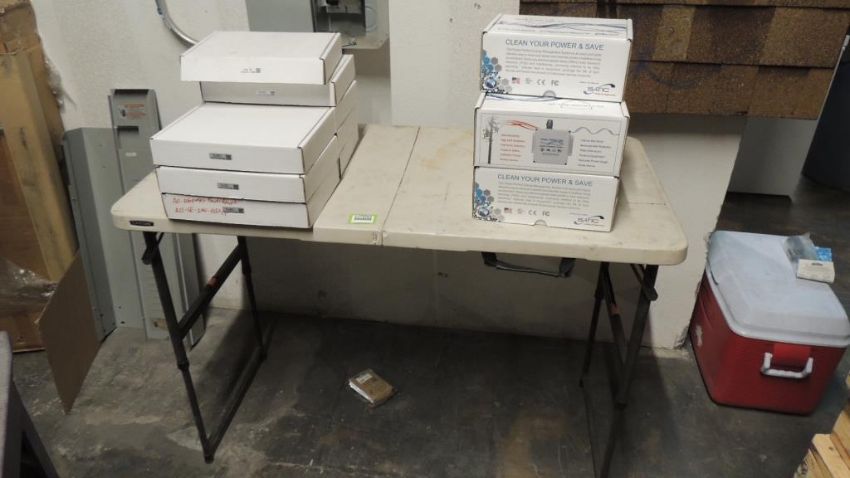 CCS Lot: (8) CTRC-03100-0250 control systems, (5) SaticShield Power Perfect Box, folding table included. HIT# 2374207. Outside parts cage. Asset Located at 1530 Goodyear Drive - Suite G, El Paso, TX 79936.