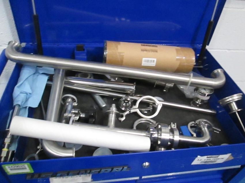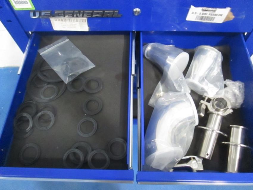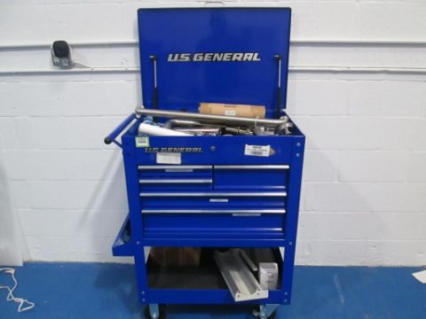 US General 5 Drawer Rolling Toolbox with Contents Consisting of Assorted Tank and Pipe Fittings. HIT# 2429525. Asset Located at 4100 N Powerline Road Suite H5, Pompano Beach, FL 33064.