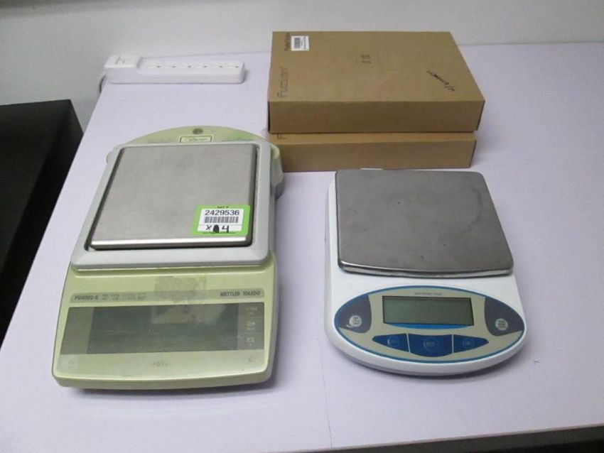 Lot of (1) Mettler Toledo PG4002-S Electronic Balance, (1) Electronic Balance and (2) New in Box Fusion Postal Scales. HIT# 2429536. Asset Located at 4100 N Powerline Road Suite H5, Pompano Beach, FL 33064.