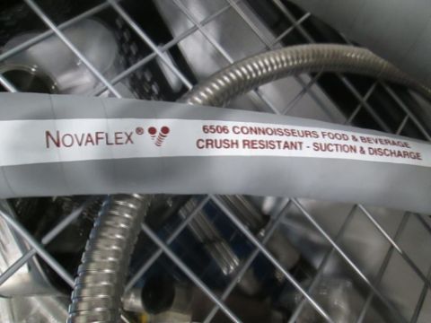 Contents of Shelf Consisting of (12) Food Grade Hoses, (6) Novaflex, Lengths: 5-10ft, (4) Brewt Alfagomma 4ft, and 2 12ft Hoses. HIT# 2429496. Asset Located at 4100 N Powerline Road Suite H5, Pompano Beach, FL 33064.