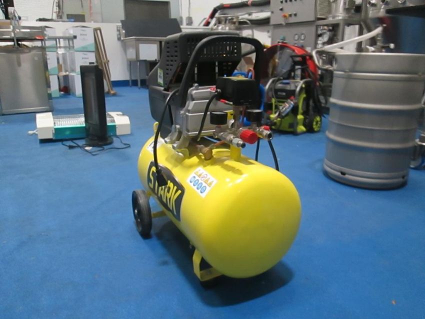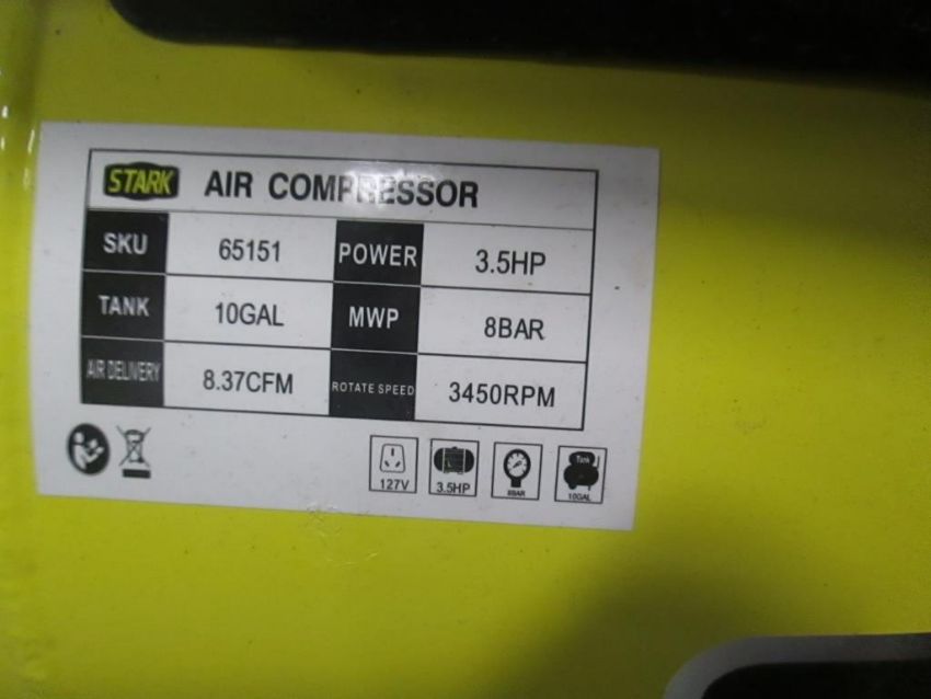 Stark Portable Air Compressor, 3.5HP, 10 Gallon Tank, MWP 8BAR, Air Delivery 8.37CFM. HIT# 2429507. Asset Located at 4100 N Powerline Road Suite H5, Pompano Beach, FL 33064.