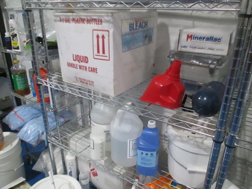 Lot: (3) Light Duty Shelving Units with Contents Consisting of Assorted Cleaning and Maintenance Supplies (See Photos). HIT# 2429527. Asset Located at 4100 N Powerline Road Suite H5, Pompano Beach, FL 33064.