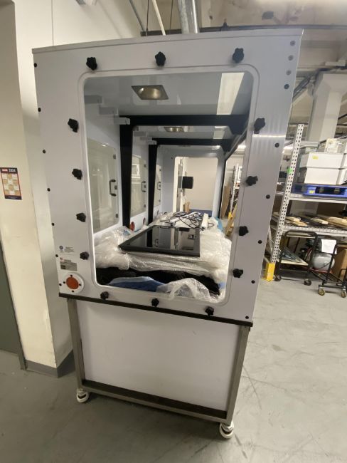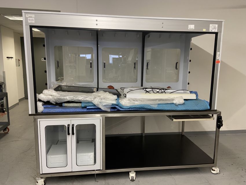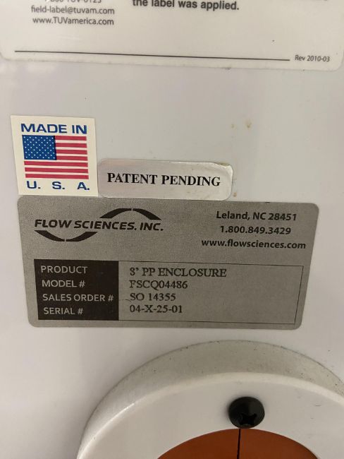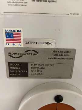 Flow Sciences Vented Enclosure FSCQ04486 8' Enclosure. S/N: 04-X-25-01. Loc: J/K. Asset Located at 100 Cummings Center #150B, Beverly, MA 01915.