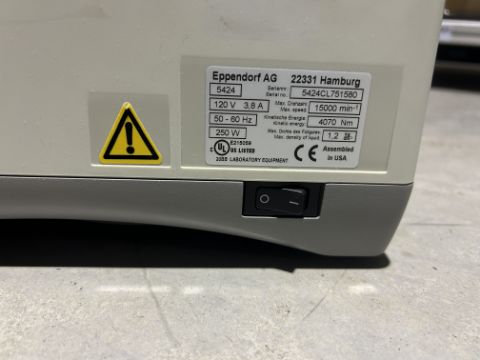 Eppendorf Non-refrigerated Centrifuge (parts only). S/N: 5424CL751580. Loc: B-1-4e. Asset Located at 100 Cummings Center #150B, Beverly, MA 01915.