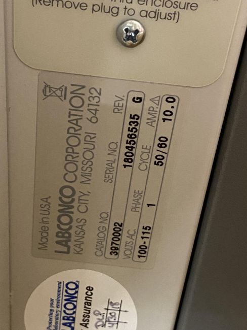 Labconco FilterMate Catalog Number 3970002 Hepa Filter. S/N: 180456535. Loc: L31a. Asset Located at 100 Cummings Center #150B, Beverly, MA 01915.