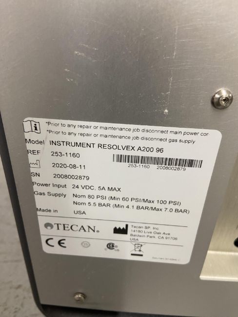 Tecan Resolvex A200 96 253-1160 Dispenser. S/N: 2008002879. Loc: J31b. Asset Located at 100 Cummings Center #150B, Beverly, MA 01915.