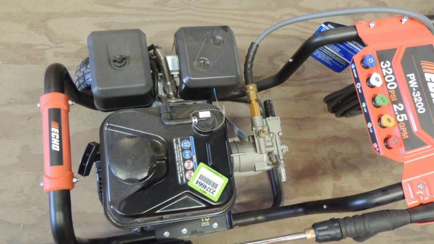 Echo Model PW-3200 Gas powered w/ hose and pressure wand, 3200psi, 2.5 gpm, Yr. 2021, UNUSED. SN# LT21275D050082. HIT# 2374664. Shop Area. Asset Located at 16331 Pleasantville Rd., San Antonio, TX 78233.
