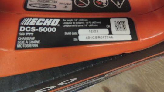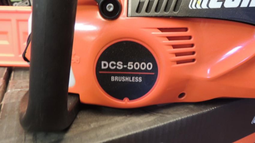 Echo Model DCS-5000 Battery powered top hand chainsaw 18" w/ bar and chain, eFORCE 56V battery system w/ battery and charger, Yr. 2021, UNUSED. SN# 401CSR017744. HIT# 2374681. Shop Area. Asset Located at 16331 Pleasantville Rd., San Antonio, TX 78233.
