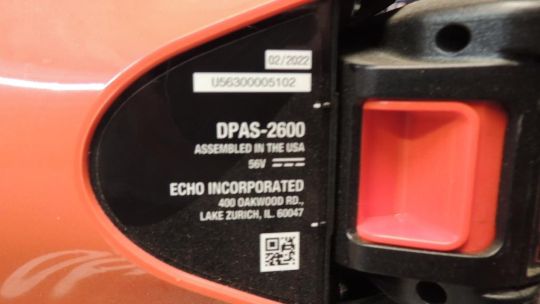Echo Model DPAS-2600 Powerhead, powered by the eFORCE 56V battery system, Yr. 2022, UNUSED. SN# U56300005102. HIT# 2374687. Shop Area. Asset Located at 16331 Pleasantville Rd., San Antonio, TX 78233.