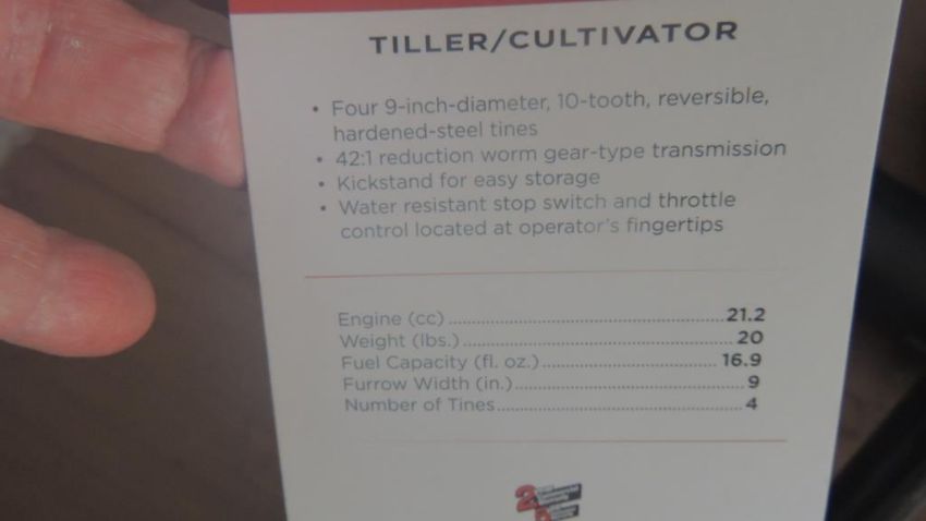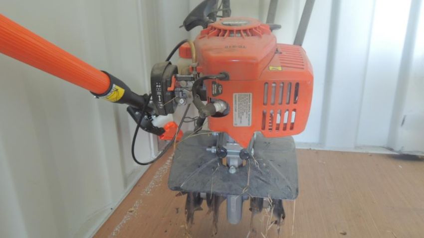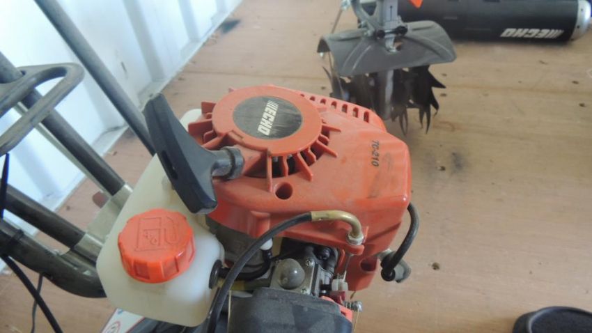 Echo Model TC-210 (Unused) Tiller/Cultivator. Gas powered tiller, 21.2cc, four 9" diameter 10 tooth reversible hardened steel tines. HIT# 2374343. Outside in Container. Asset Located at 5515 N US Hwy 281, Marble Falls, TX 78654.