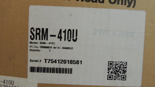 Echo Model SRM-41OU Power head only, gas powered 42.7cc trimmer w/U handle, UNUSED IN SEALED CARTON. SN# T75412018581. HIT# 2374676. Shop Area. Asset Located at 16331 Pleasantville Rd., San Antonio, TX 78233.