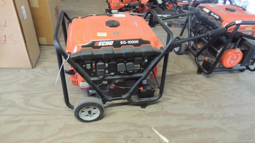 Echo Model EG-10000 Gas powered 420cc, 10,000 watts, electric start, folding handles, UNUSED. SN# EG-210813-A0003920. HIT# 2374656. Shop Area. Asset Located at 16331 Pleasantville Rd., San Antonio, TX 78233.