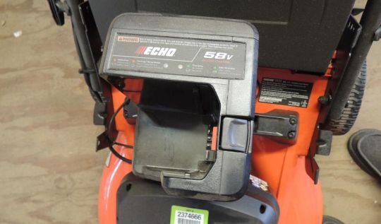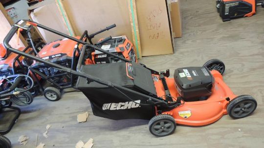 Echo Model DLM-2100 Cordless 58V Echo eFORCE push mower, includes battery and charger, 53 CM w/grass catcher, cutting width, 21". UNUSED. HIT# 2374666. Shop Area. Asset Located at 16331 Pleasantville Rd., San Antonio, TX 78233.