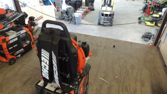 Echo Model PB-755ST Gas powered Back pack blower 63.3cc, Yr. 2022. UNUSED. SN# P43214202223. HIT# 2374673. Shop Area. Asset Located at 16331 Pleasantville Rd., San Antonio, TX 78233.