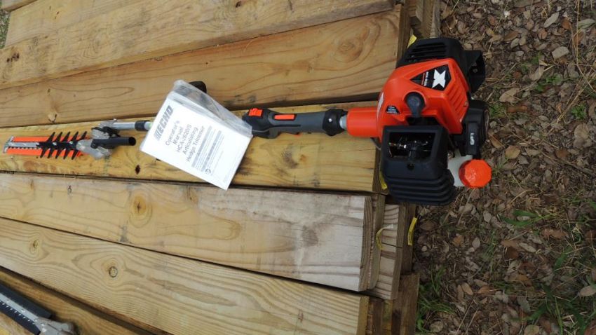 Echo Model HCA-2620S (Unused) Hedge Trimmer. Articulating hedge Trimmer, gas powered 21.2cc, Yr. 2021. SN# U45815003307. HIT# 2374379. Outside in Container. Asset Located at 5515 N US Hwy 281, Marble Falls, TX 78654.