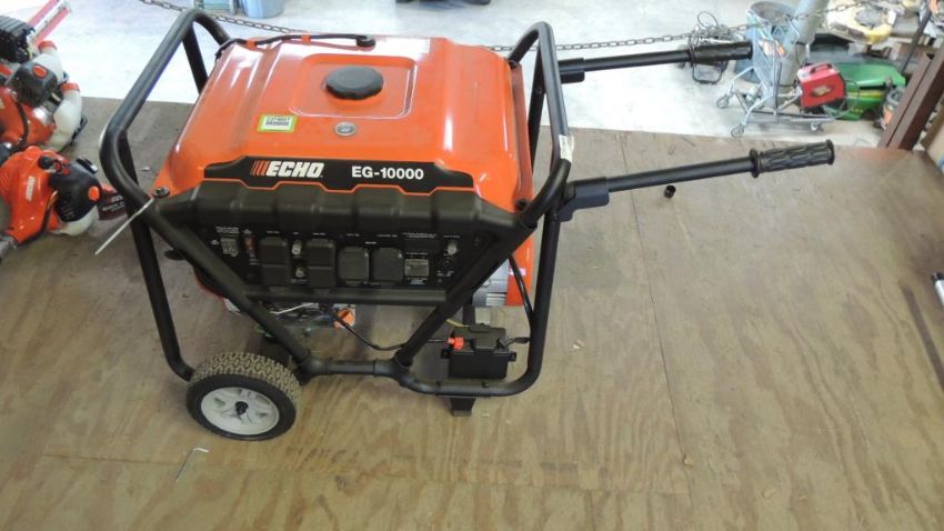 Echo Model EG-10000 Gas powered 420cc, 10,000 watts, electric start, folding handles, UNUSED. SN# EG-20813-A0003938. HIT# 2374657. Shop Area. Asset Located at 16331 Pleasantville Rd., San Antonio, TX 78233.